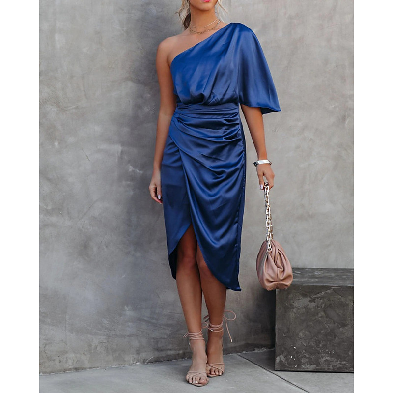 Women's Mini Dress Satin Dress Prom Dress Party Dress Cocktail Dress Elegant Modern Evening Party Party Cocktail Party Slim Plain Half Sleeve One Shoulder Black Navy Blue Orange Gold Summer Spring