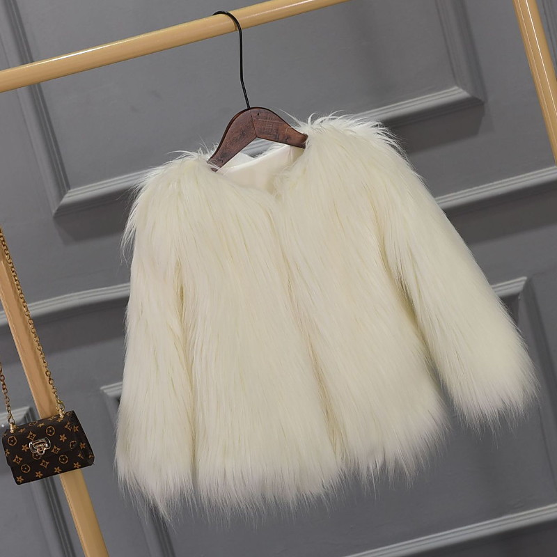 Kids Girls' Faux Fur Coat Solid Color Cute School Coat Outerwear 4 years Fall White Champagne Pink