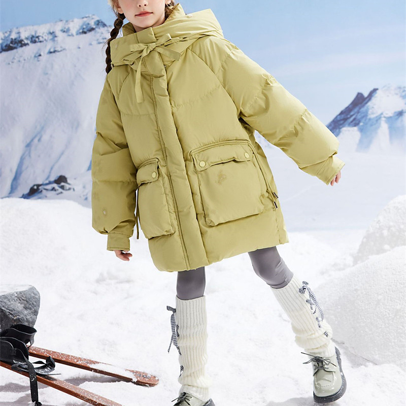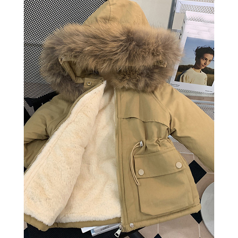 Kids Girls' Down Coat Solid Color Fashion Fur Trim Zipper Pocket School Coat Outerwear 4-12 Years Winter Pink Khaki