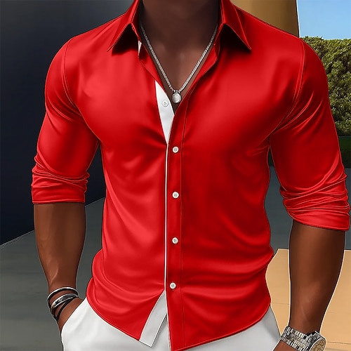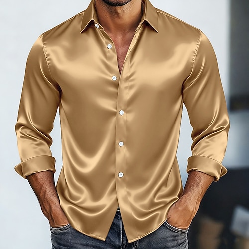 Per uomo Camicia Camicia in raso Camicia elegante Camicia casual Camicia con Bottoni Camicia da Ballo Semplice Formale Matrimonio Nero Rosso Blu reale Oro Manica Lunga Bavero Tutte le stagioni