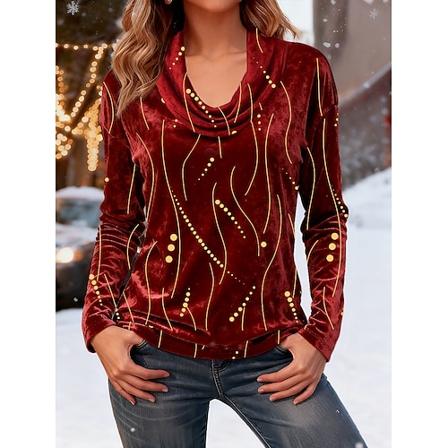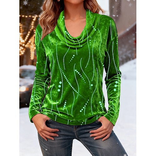 Per donna Maglietta Tinta unica Grafico Elegante Vintage Moda Manica Lunga Dolcevita Top Regolari Quotidiano Uscire Weekend Stampato A Strati Vino Blu Reale Oro Verde Autunno Inverno