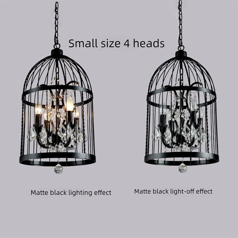 LED Pendant Light Vintage Restaurant Bird Cage Crystal Chandelier Lamp Home Living Room Villa Rust Iron Light Fixture Lights
