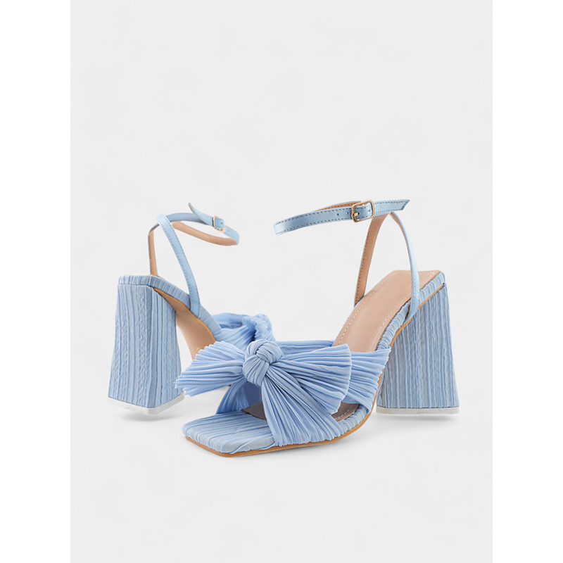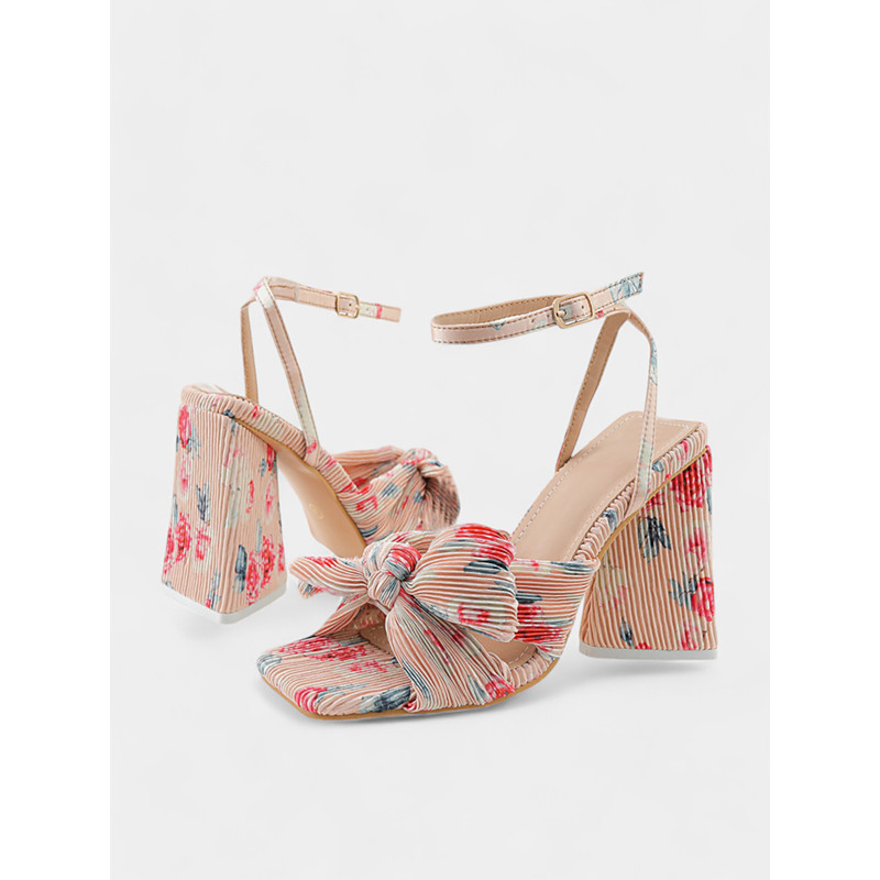 Rose Gold Block Heel Sandals with Textured Knot Detail and Adjustable Straps - Women's Elegant Evening or Party Wear
