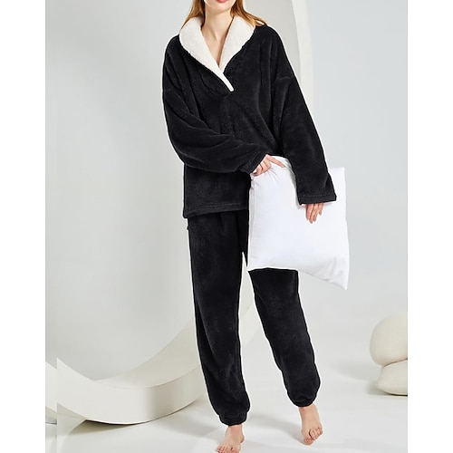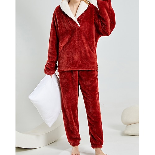 Per donna Abbigliamento da Casa Set Pigiama Flanella Moda Casual Colore Puro Elastico in vita Pullover Pantalone Vacanza Casa Manica Lunga Scollo a V Nero Vino Viola Rosso rosa Beige Inverno