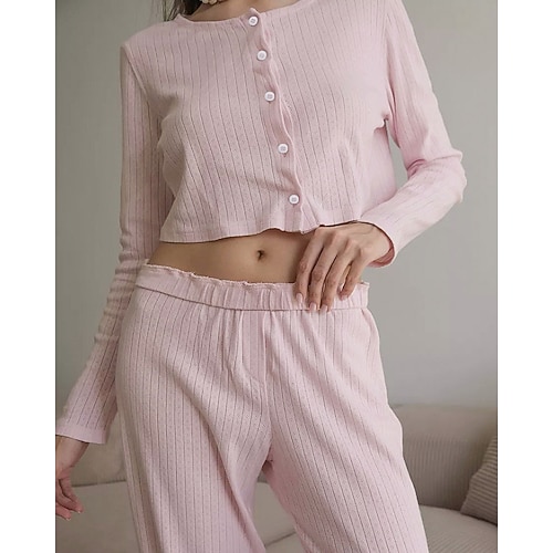 Per donna Pigiama Abbigliamento da Casa Set Pigiama Caldo Attivo Moda Floreale Grafico Colore Puro Bottoni Pantalone Casa Quotidiano Da letto Manica Lunga Girocollo Bianco Rosa Estate Primavera