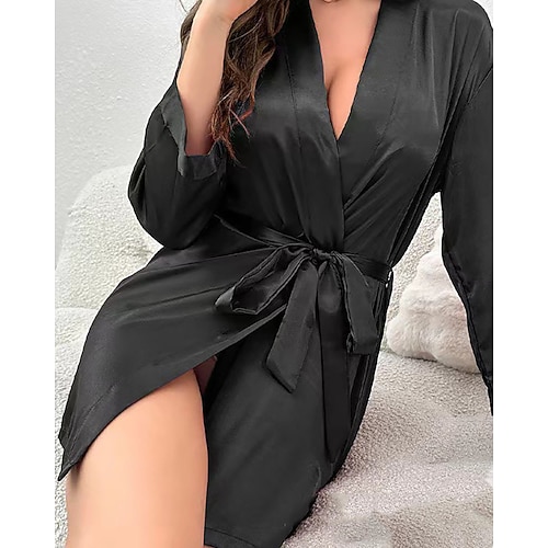 Per donna Abbigliamento da Casa Accappatoio Moda Casual Morbido Colore Puro Patchwork Vestiti Casa Vacanza Manica Lunga Scollo a V Blu Nero Bianco Rosa Vino Estate Primavera Autunno Vestibilit
