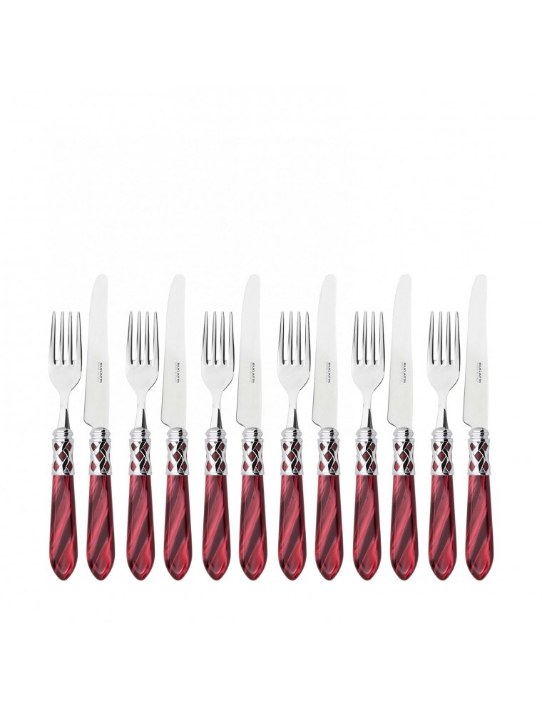 aladdin chromring, 12-teiliges obstbesteckset, roter griff, galeriebox, casa bugatti