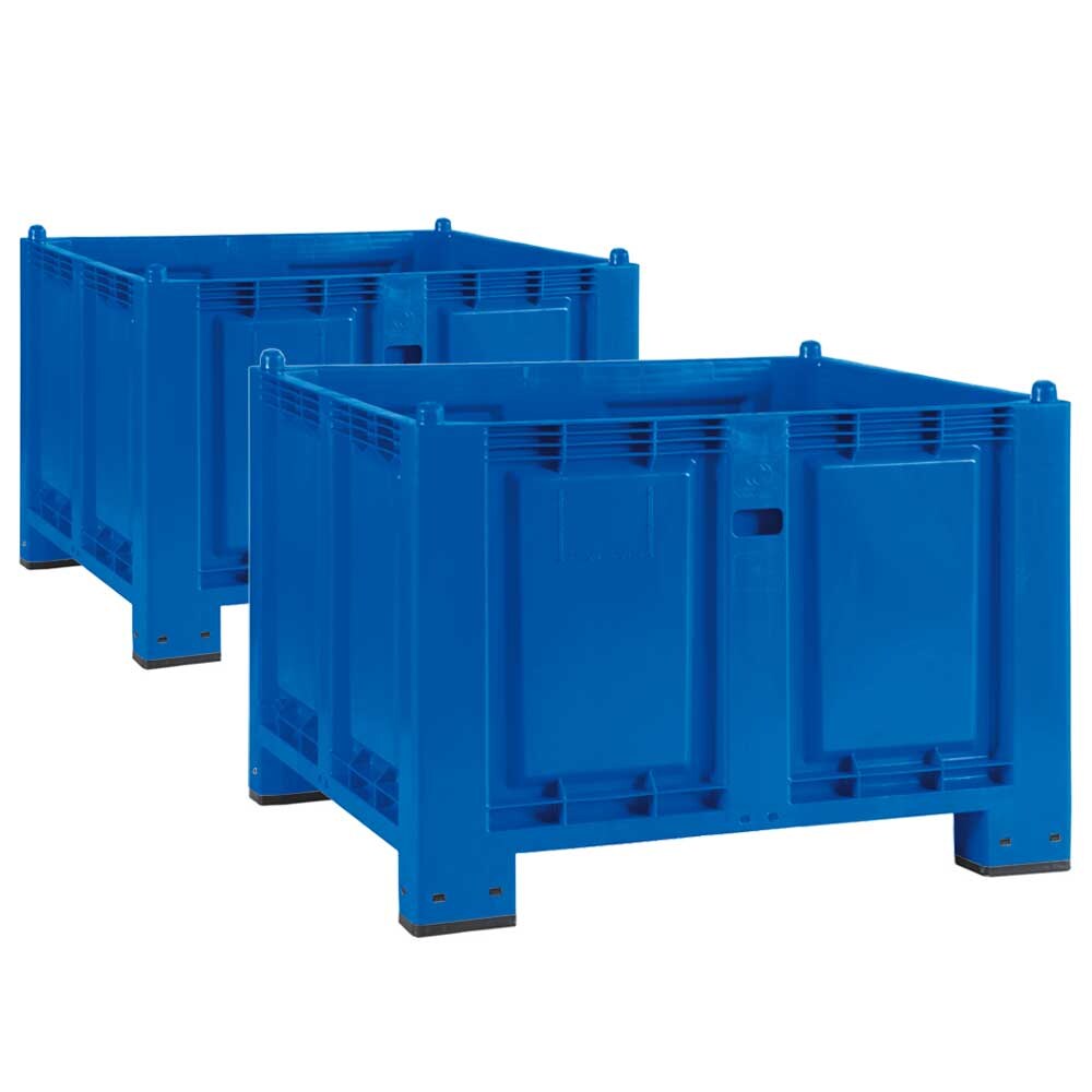 BRB 2x Palettenbox, 4 Füßen, LxBxH 1200x800x850 mm, geschlossen, Trgkr 500 kg, blau