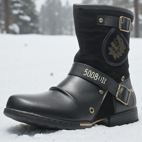 stivali da uomo in pelle mimetica a metà polpaccio con cinturini con fibbia, scarpe da lavoro da esterno in stile tattico militare