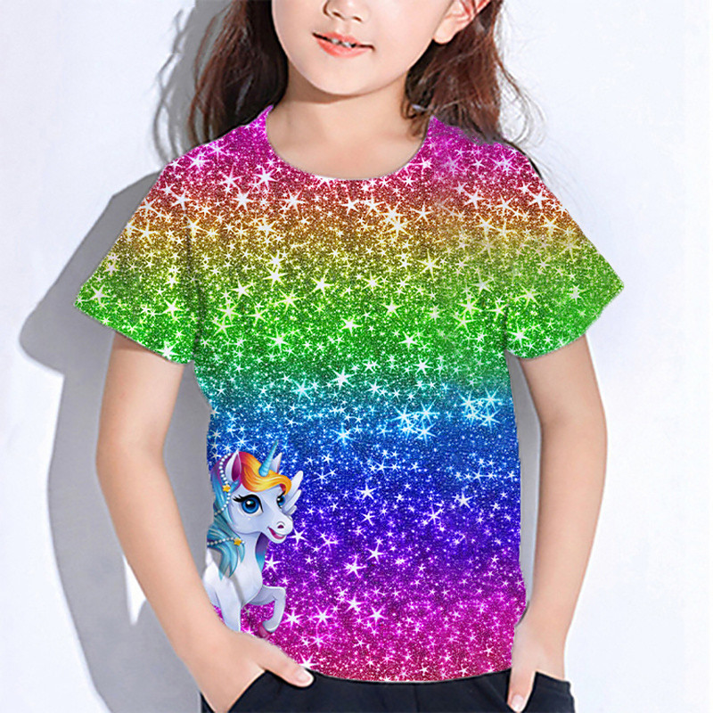 Girls' 3D Graphic Unicorn T shirt Tee Short Sleeve Summer Spring Fashion Basic Kids 4-12 Years Crew Neck Outdoor Casual Daily Regular Fit