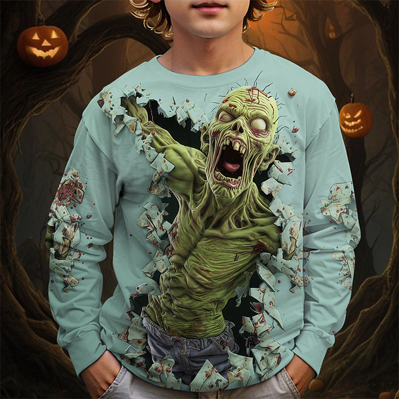 Halloween Boys' 3D Skull T shirt Tee Long Sleeve Spring Fall Fashion Basic Kids 4-12 Years Crew Neck Outdoor Casual Daily Regular Fit