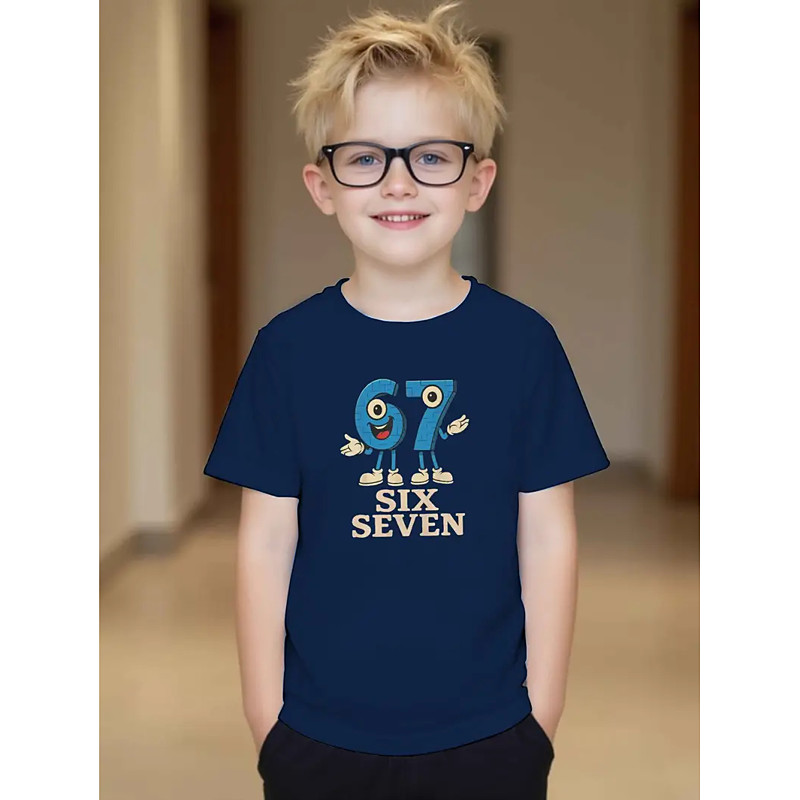 Cotton Kids Boys' Blue Black Graphic Funny Slang 67 T shirt Blouse Crew Neck Short Sleeve Outdoor Dailywear Fashion Streetwear Designer Printing Summer