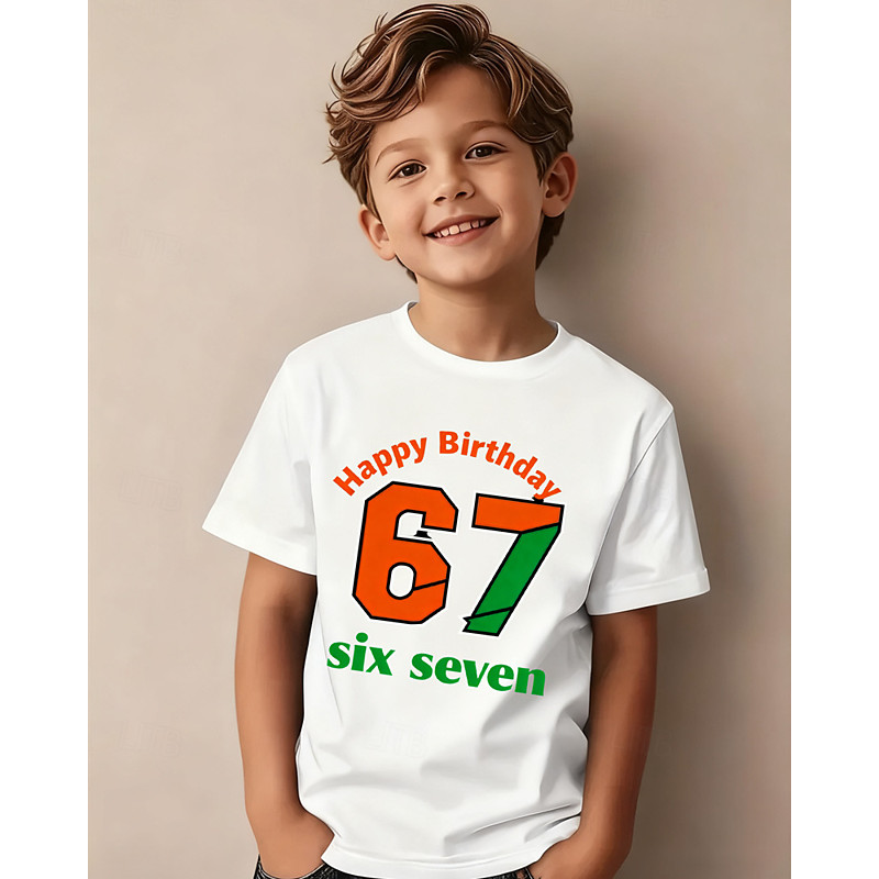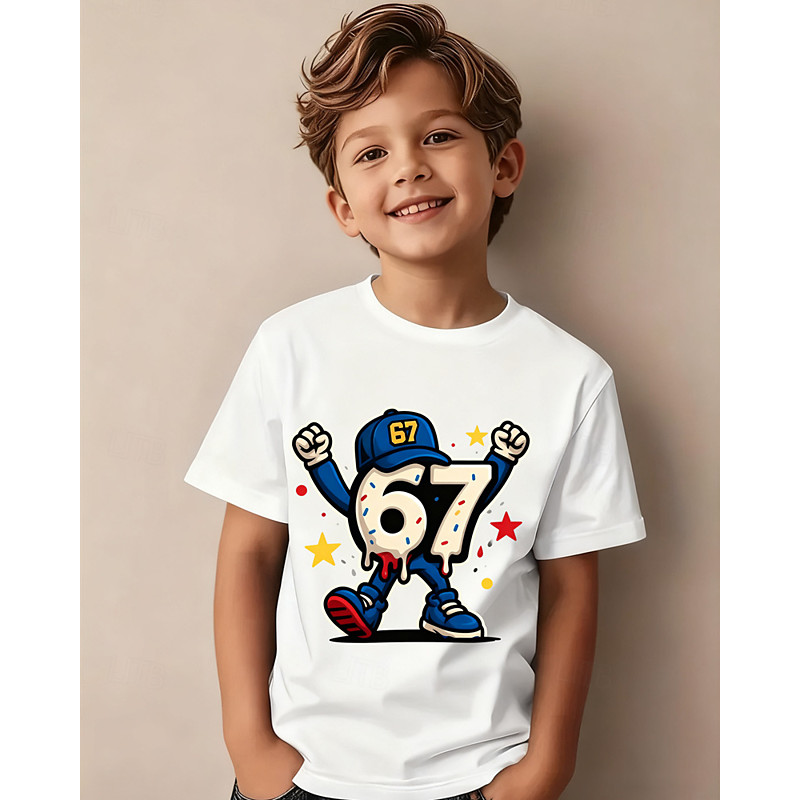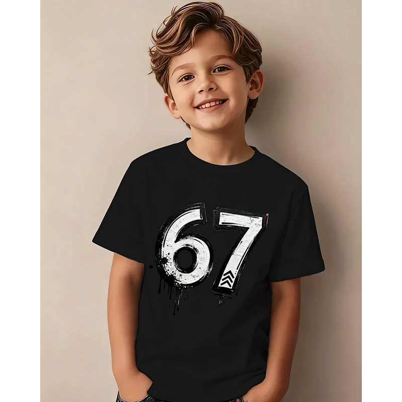 Cotton Kids Boys' Black White Graphic Funny Slang 67 T shirt Blouse Crew Neck Short Sleeve Outdoor Dailywear Fashion Streetwear Designer Printing Summer