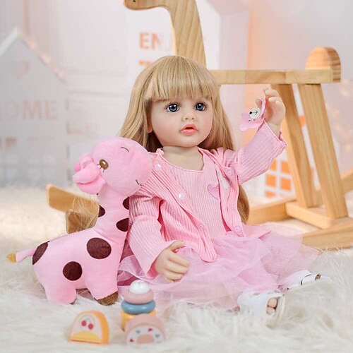 Reborn Babypuppen - 22 Zoll Weichkörper Realistische Babypuppe Mädchen Hübsches Wachblondes Haar Mädchen Bebe Reborn de Silicona Real Life Babypuppen mit Geschenkbox für Kinder ab 3 Jahren Sammler