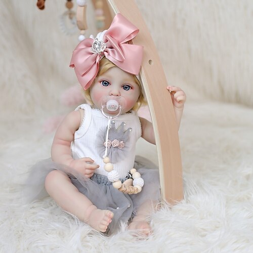 Reborn Babypuppen - 22 Zoll Weichkörper Realistische Babypuppe Mädchen Hübsches Wachblondes lockiges Haar Mädchen Bebe Reborn de Silicona Real Life Babypuppen mit Geschenkbox für Kinder ab 3 Jahren