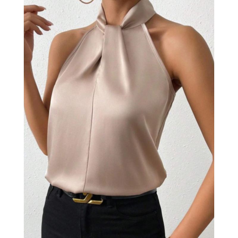 Women's Shirt Elegant Satin Silk Shirt Plain Elegant Stylish Sleeveless Halter Neck Regular Tops Holiday Going out Backless Black White Camel Purple Brown Summer Spring