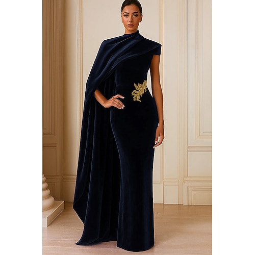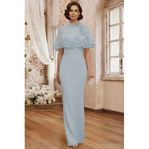 Sirena Tromba Tubino Colonna Lunghezza al pavimento Abito da ballo con mantello Abito da Sera Abito formale Elegante Setoso Senza Maniche Collo Alto Matrimonio Formale Mantelle Crepe Elasticizzato con