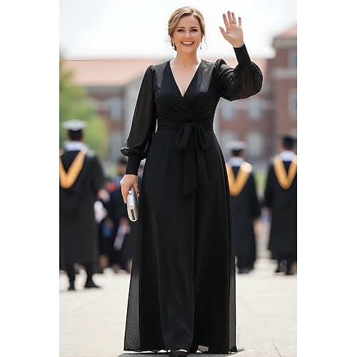 Linea ad A Sirena Tromba Strascico a Terra Abito da invitata a nozze Vestito in Chiffon Abito Formale Abito da cerimonia per signora Manica Lunga Scollo a V Elegante Spacco Alto Formale Ospite di