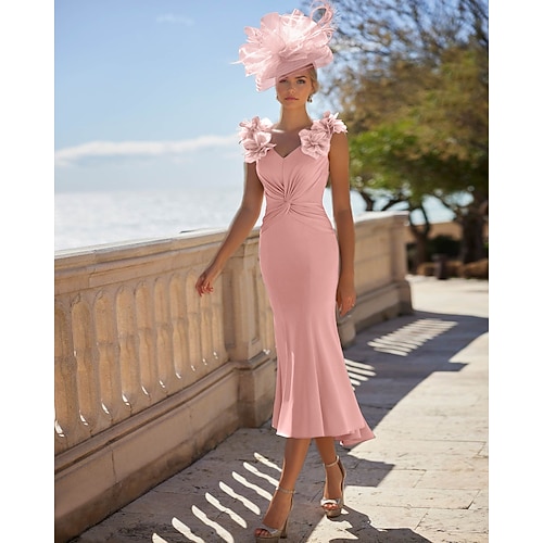 Sirena Tromba Asimmetrico Lunghezza alla caviglia Abiti da Cocktail Abiti da festa Elegante Alto Basso Senza Maniche Scollo a V Matrimonio Formale Tasca Crepe Elasticizzato con Applicazioni