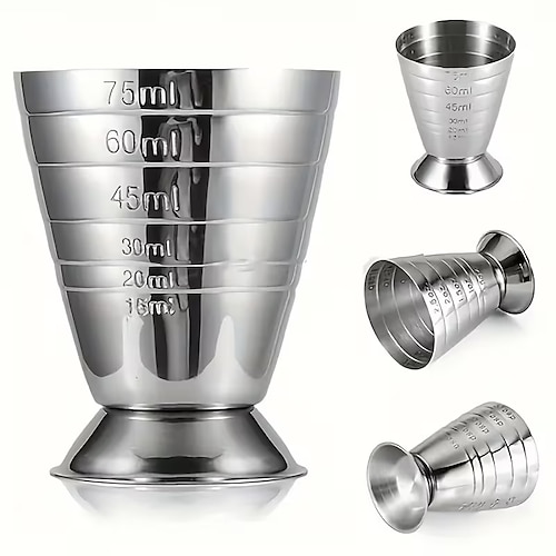 Messbecher aus Edelstahl mit stabilem Standfuß Ausgießer – robuster 304-Mischbecher mit transparenter Skala Unzen-/Milliliter-Markierungen für Bars, Cafés und Zuhause – ideal zum Mischen,