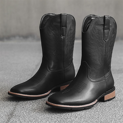 stivali da cowboy western da uomo, punta quadrata, slip-on, stivali da equitazione da lavoro a metà polpaccio, calzature casual in stile country per l'uso quotidiano