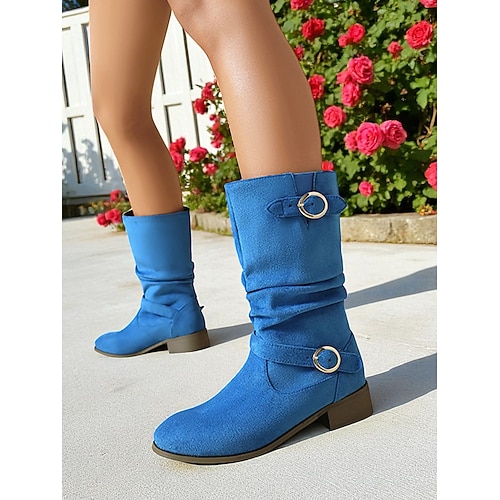 stivali da donna a metà polpaccio con cinturini con fibbia – stivali invernali in pelle scamosciata stile vintage per outfit casual e moda autunnale