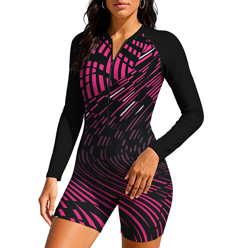 Women's Rash Guard Dive Skin Suit Bathing Suit Swimsuit Set Abstract Geometry UV Sun Protection UPF50 Ultra Light (UL) Long Sleeve Swimwear Sun Shirt Zip Up Removable Pad Front Zip Surfing Beach