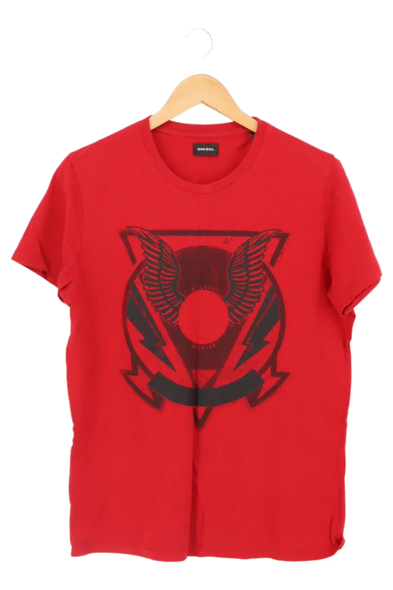 DIESEL T-Shirt Herren Gr. M Rot Grafik Casual Streetwear
