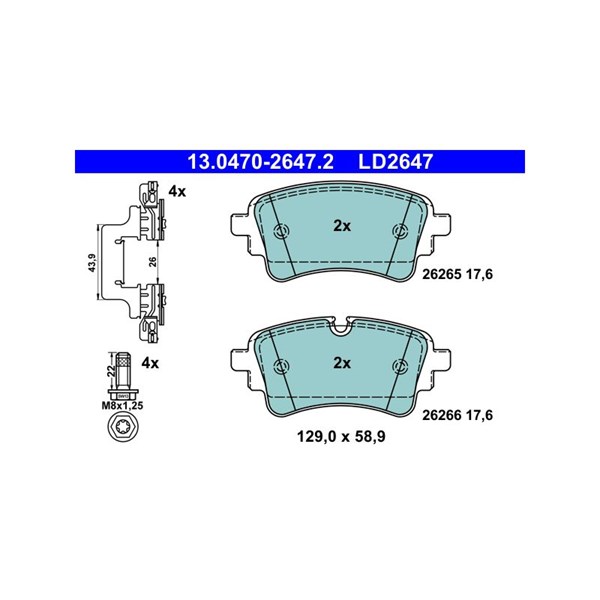 Jarrupalasarja, levyjarru, Taka-akseli Ate 13.0470-2647.2 - audi, vw - OE 4M0 698 451 BC, 4M0 698 451 BD, 4N0 698 451 D