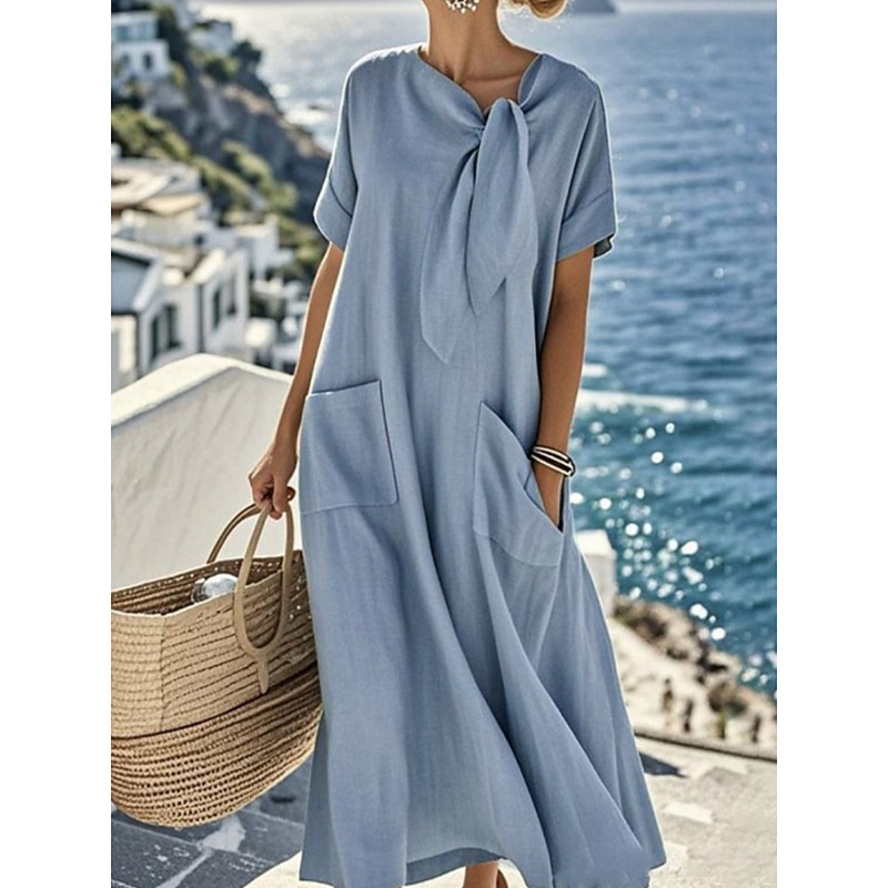 Women's Maxi Dress A Line Dress Summer Dress Casual Daily Loose Fit Plain Short Sleeve V Neck Blue Light Brown Brown Army Green Summer