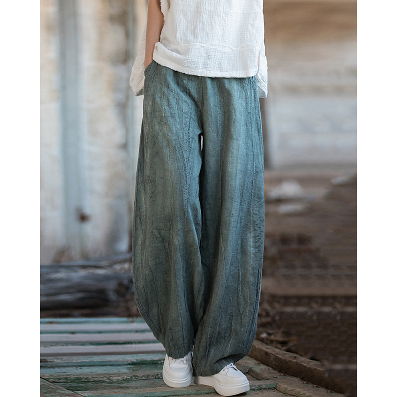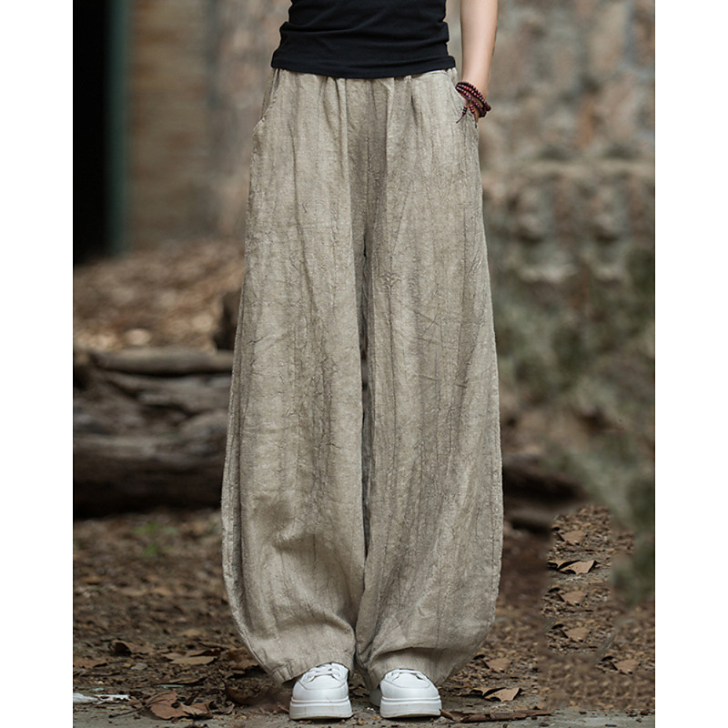 Women's Cotton Linen Pants Chinos Bloomers Vacation Streetwear Casual Full Length Medium Waist Solid Color Pocket Elastic Waistband Comfy Comfort Inelastic Daily Outdoor Street Amethyst Apricot Teal