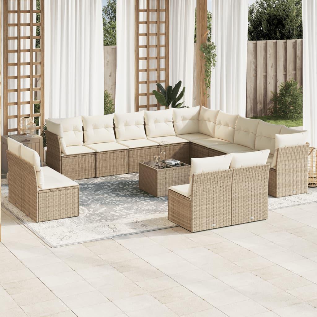Sofasæt til haven 14 dele med hynder polyrattan beige