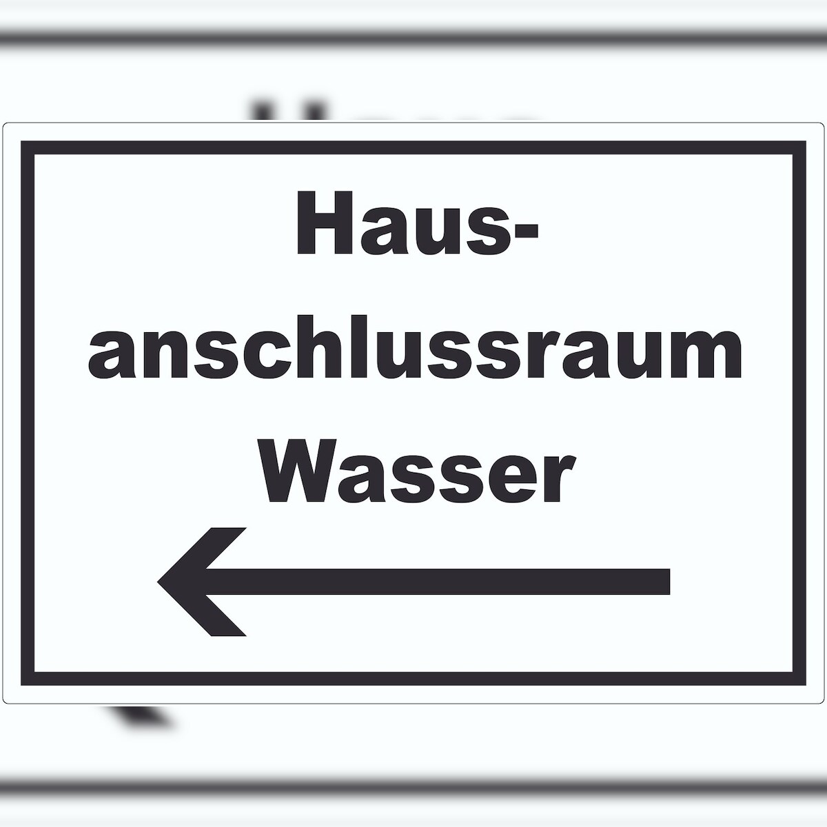 HB-Druck Hausanschlussraum Wasser Aufkleber mit Text Richtungspfeil links HAR waagerecht A6 (105x148mm)