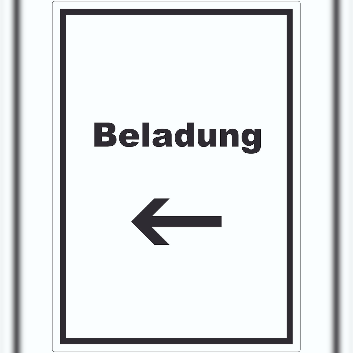 HB-Druck Beladung Aufkleber mit Text und Richtungspfeil links Transport Fracht hochkant A0 (841x1189mm)