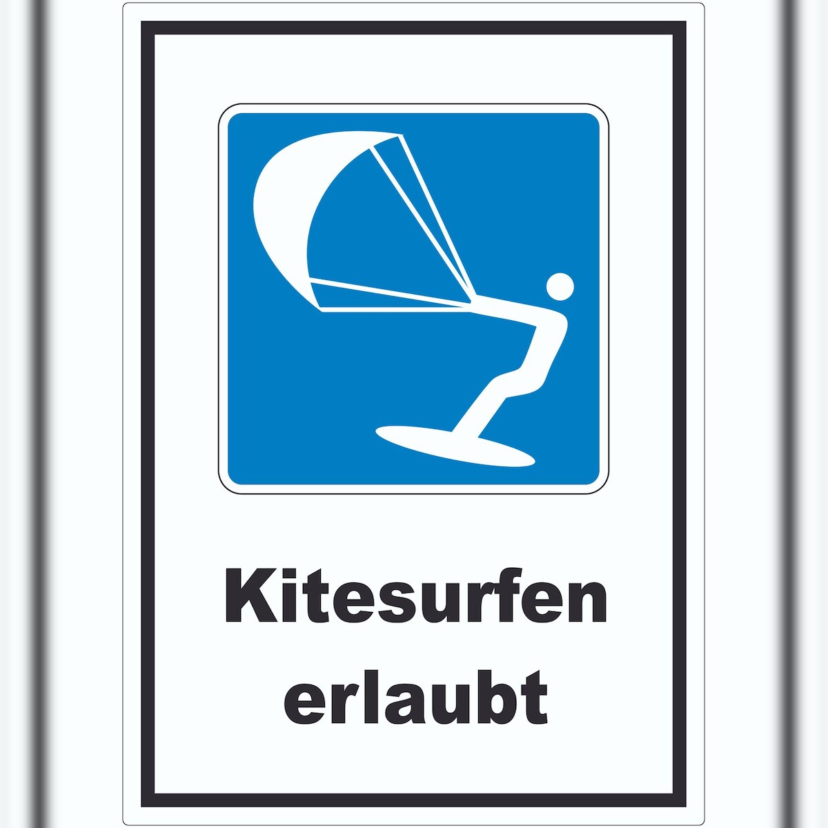 HB-Druck Kitesurfen erlaubt Symbol und Text Aufkleber A9 (37x52mm)