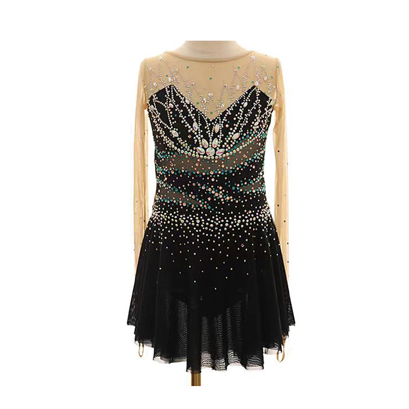 Eiskunstlaufkleid Damen Mädchen Eislaufen Kleid Schwarz Patchwork Daumenloch Netzstoff Spandex Dehnbar Training Übung Professionell Eiskunstlaufkleidung Thermowarm Kristall / Strass Langarm Eislaufen