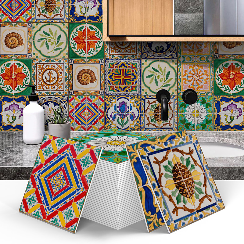 12 Pcs 6 inch Tile Stickers, Peel and Stick Self Adhesive Removable Moroccan Talavera Tiles Backsplash Waterproof Kitchen Bathroom Furniture Staircase Home Decor