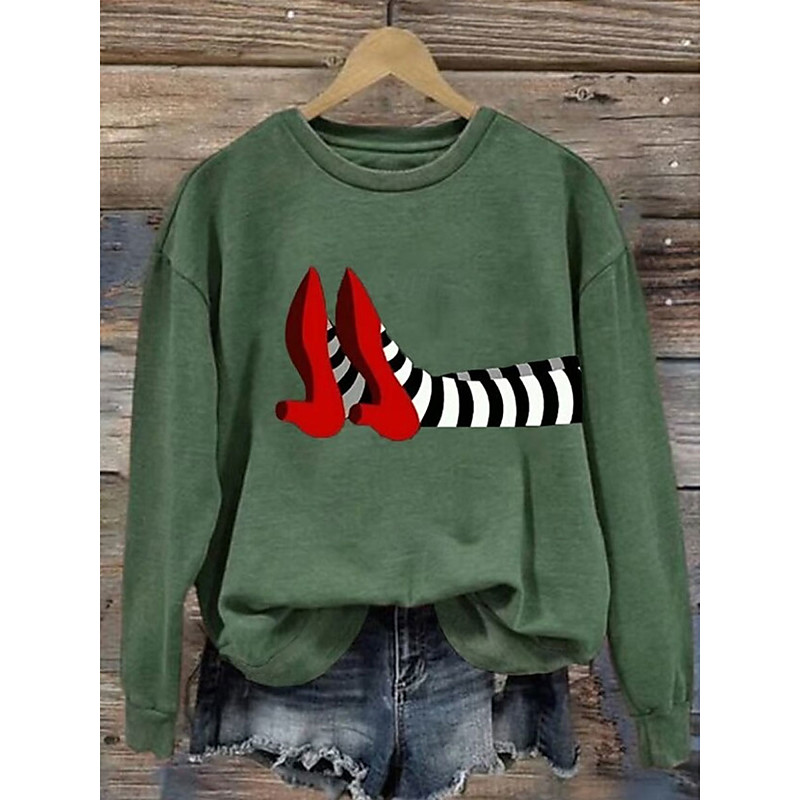 Women's Sweatshirts Witch Graphic Casual Long Sleeve Crew Neck Regular Tops Street Dailywear Casual Print Black White Light Green Blue Orange Spring Fall Winter