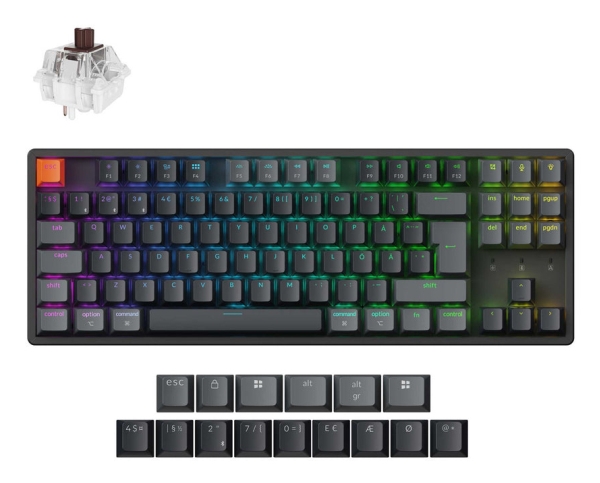 Keychron K8 QMK, Langallinen ja langaton, USB + RF Wireless + Bluetooth, Magneettimekaaninen näppäinkytkin, RGB LED, Musta