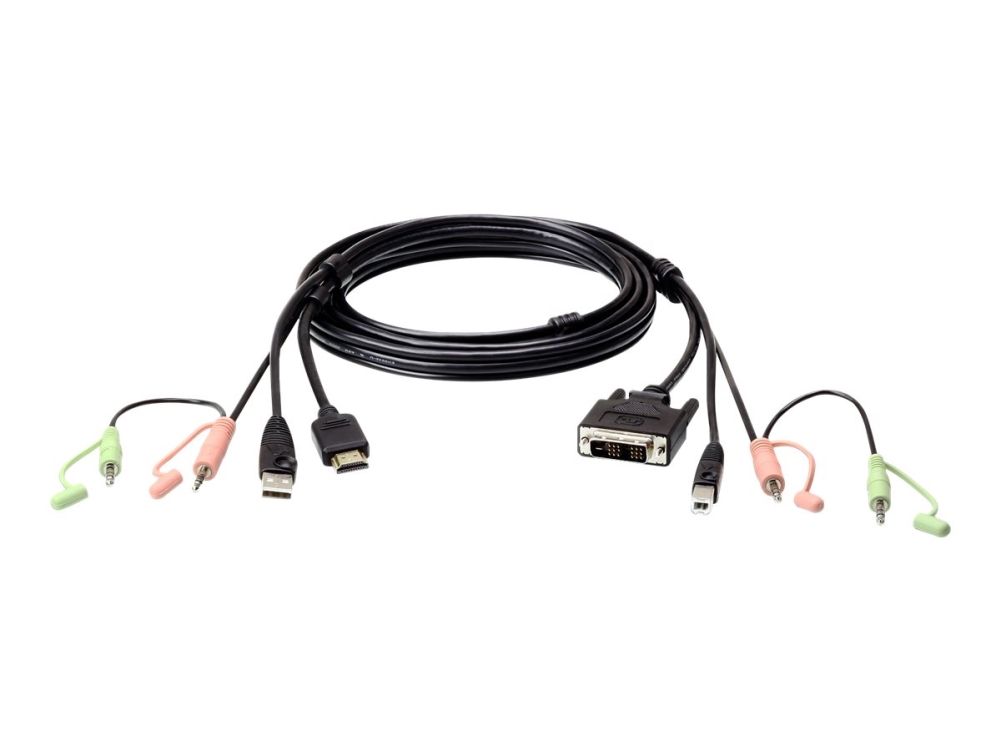ATEN 1,8 M USB HDMI auf DVI-D KVM Kabel mit Audio, 1,8 m, Schwarz, HDMI Type A (Standard), DVI-D, Männlich, Männlich