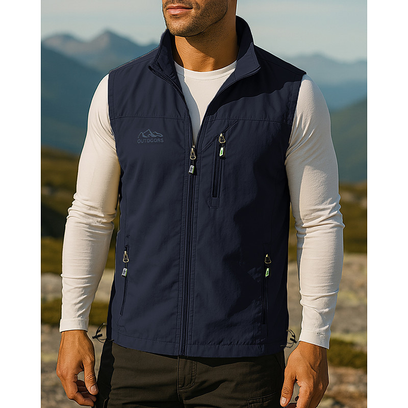 Men's Outdoor Vest Vest Fishing Vest Outdoor Daily Fashion Casual Spring Fall Pocket Polyester Comfortable Plain Zipper Stand Collar Regular Fit Black Khaki Army Green Dark Blue Vest