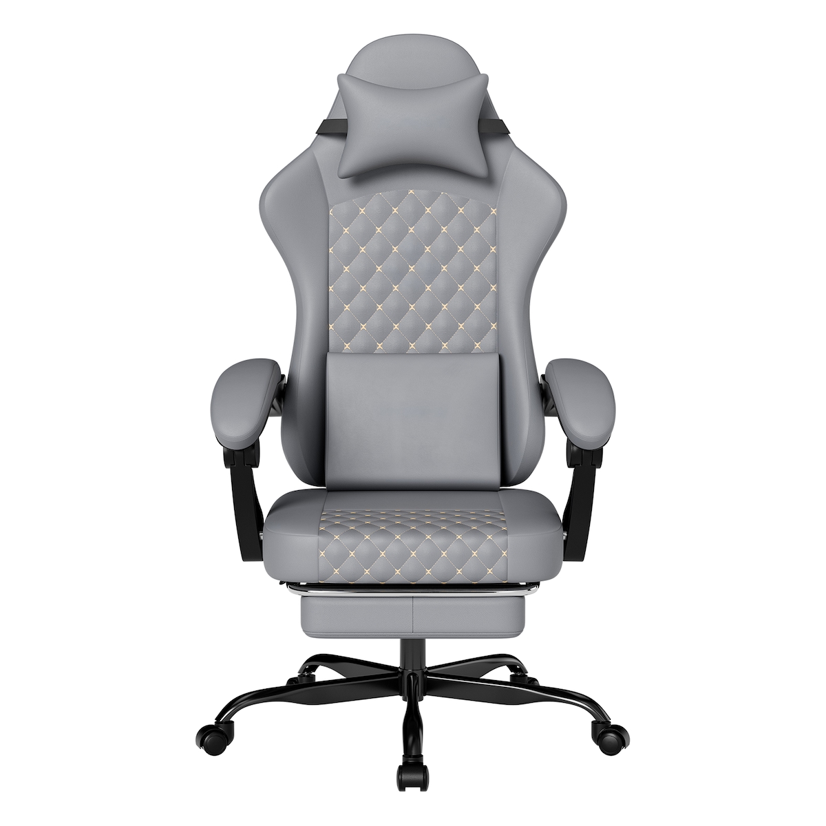 MODFU Gaming Stuhl ergonomisch mit Fußstütze und synchronen Armlehnen Grau 121x63x59 cm aus Kunstleder bis 136 kg belastbar