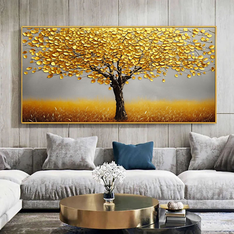 Abstract Golden Big Tree Oil Painting on Canvas Large Textured Wall Art Original Tree of Life Painting Custom Living Room Home Decor Gift