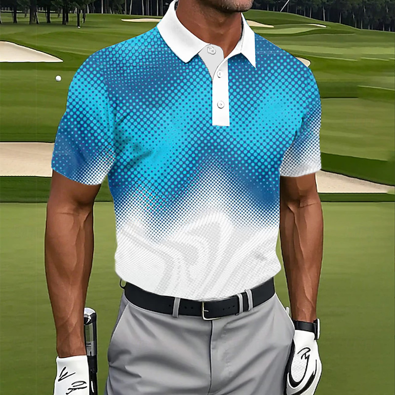 Men's Graphic Geometric Golf Shirt Short Sleeve Polo Shirts Collared Shirts Casual School Outdoor Street Dailywear 3D Print Summer Blue Purple Green