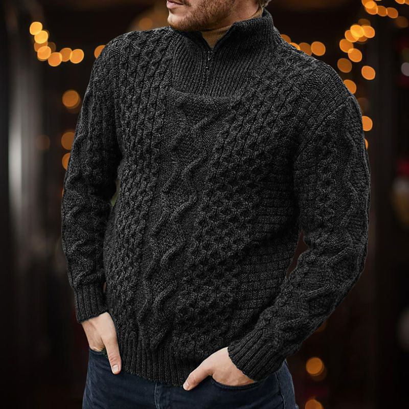 Men's Christmas Sweaters Pullover Sweater Jumper Cable Knit Regular Tops Knitted Quarter Zip Plain Stand Collar Modern Contemporary Xmas Work Clothing Apparel Winter Black White M L XL