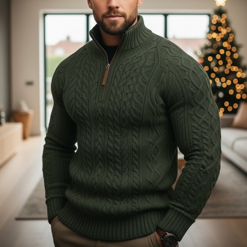 Men's Irish Pullover Aran Pullovers Christmas Sweaters Pullover Sweater Jumper Quarter Zip Pullover Sweater Ribbed Cable Knit Regular Half Zip Knitted Plain Stand Collar Modern Contemporary Xmas Work