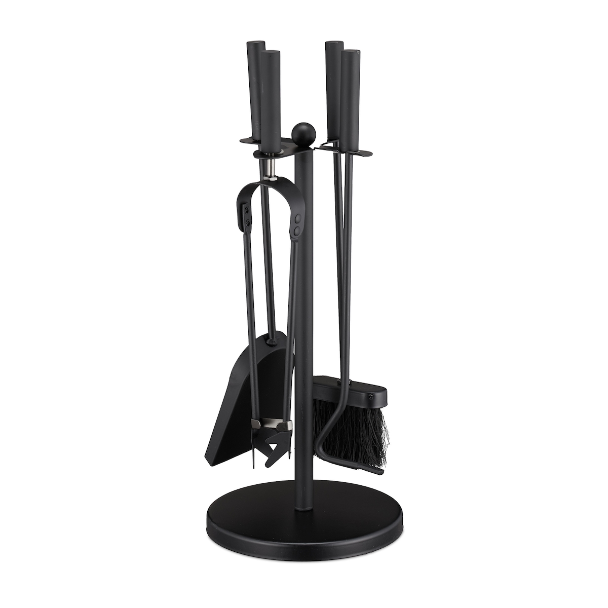 Relaxdays Kaminbesteck, 5 tlg. Kamingarnitur, Schürhaken, Schaufel, Besen, Zange & Ständer, Ofenbesteck Stahl, schwarz