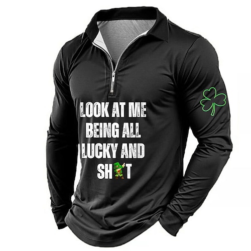 San Patrizio Per uomo Quadrifoglio Polo con zip Manica Lunga Magliette polo Camicie con Colletto Casual All'aperto Streetwear Athleisure Abito da festa Stampa 3D Primavera Autunno Nero Verde Blu