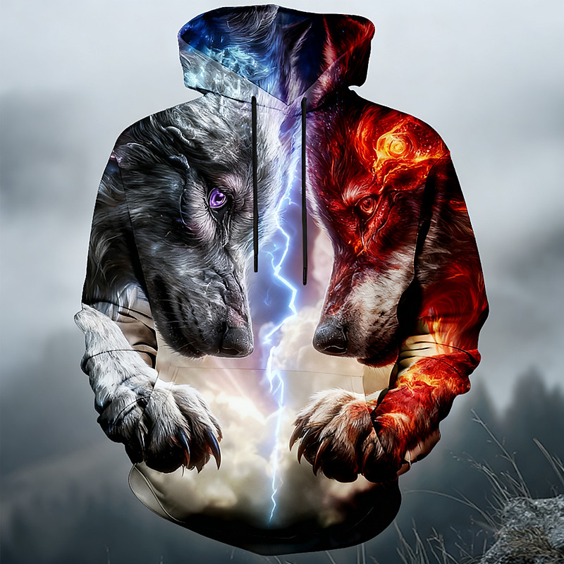 Men's Wolf Hoodie Sweatshirt 3D Fantasy Crew Neck Streetwear Club Gift White Purple Green Drawstring Fall Winter Designer S M L XL XXL XXXL