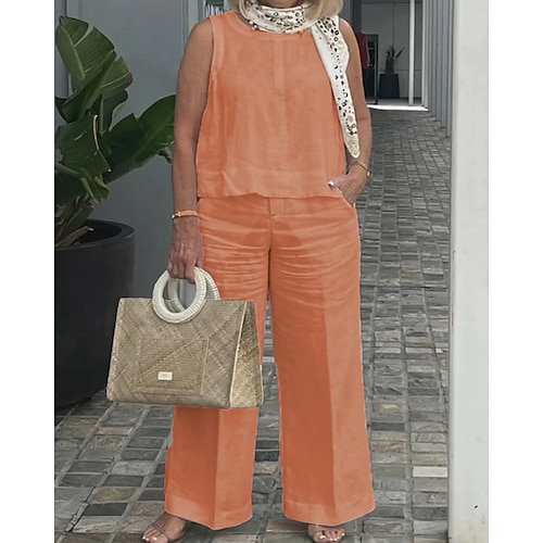Per donna Elegante Moda Streetwear Set di biancheria in cotone Set di Pantaloni Bolero Top Senza Maniche Girocollo Tinta unica Patchwork Casuale Quotidiano All'aperto Giallo Blu Viola Estate